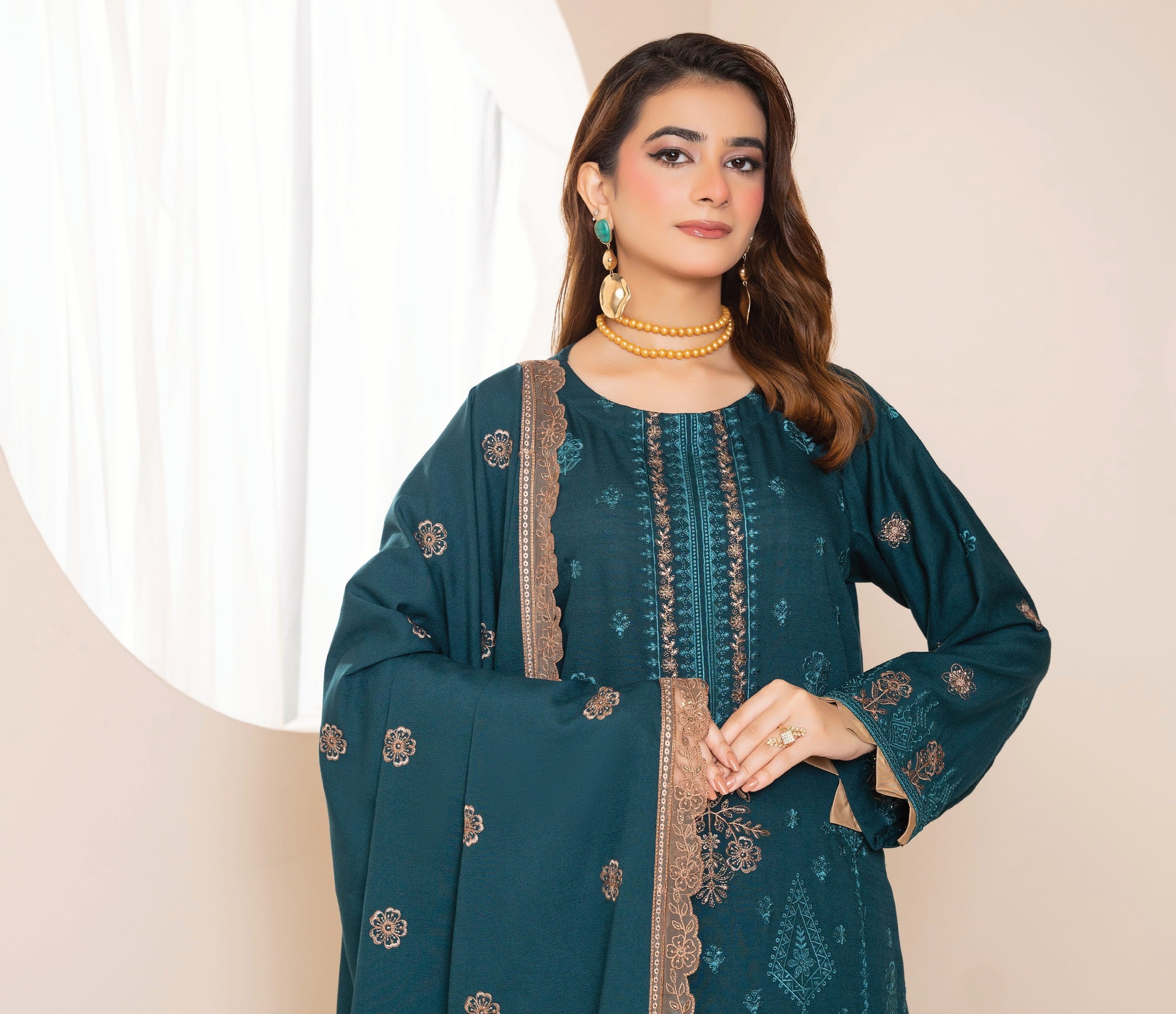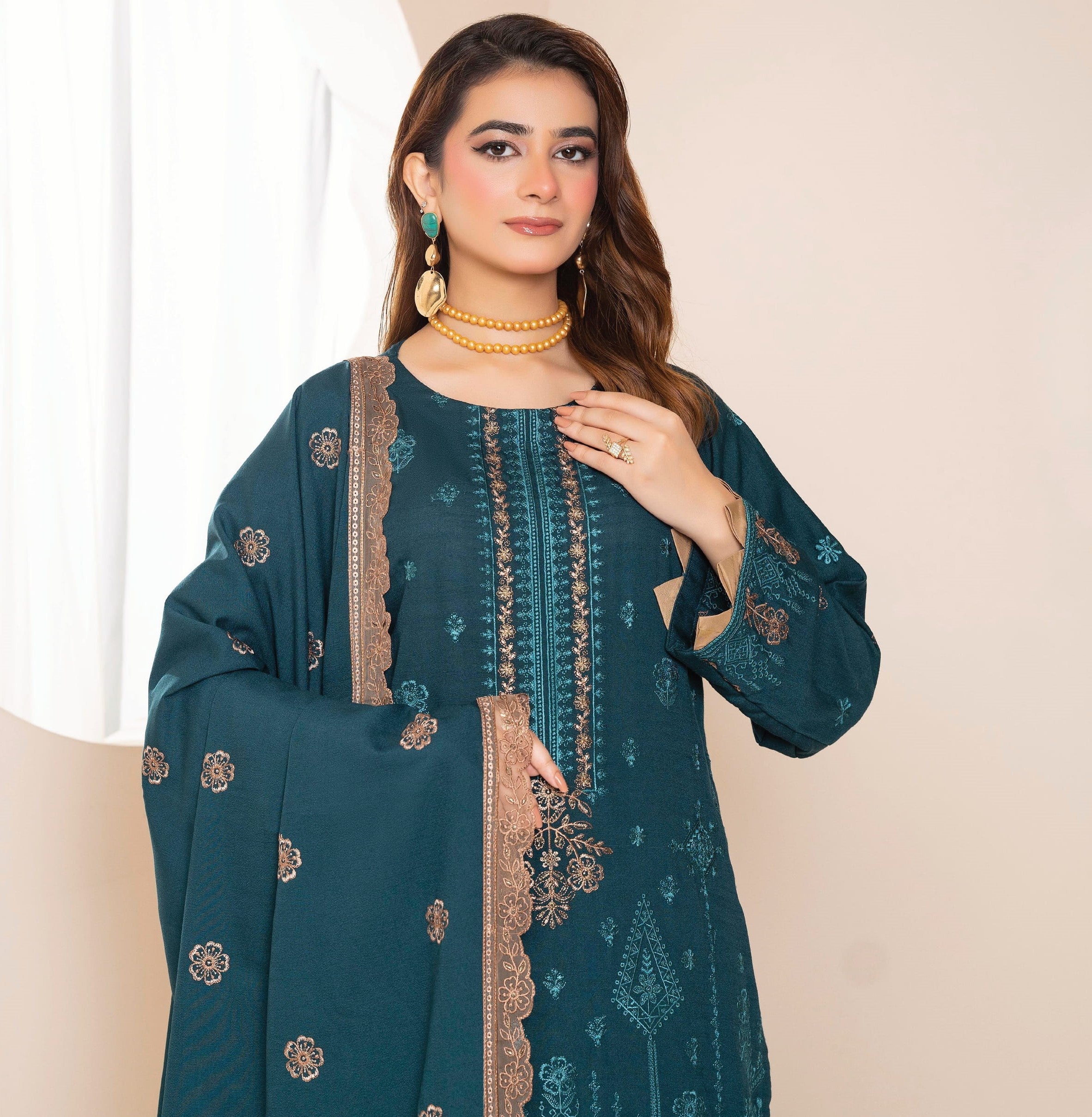 AANGAN-3 Piece Embroidered Self Slub Peach (Unstitched)