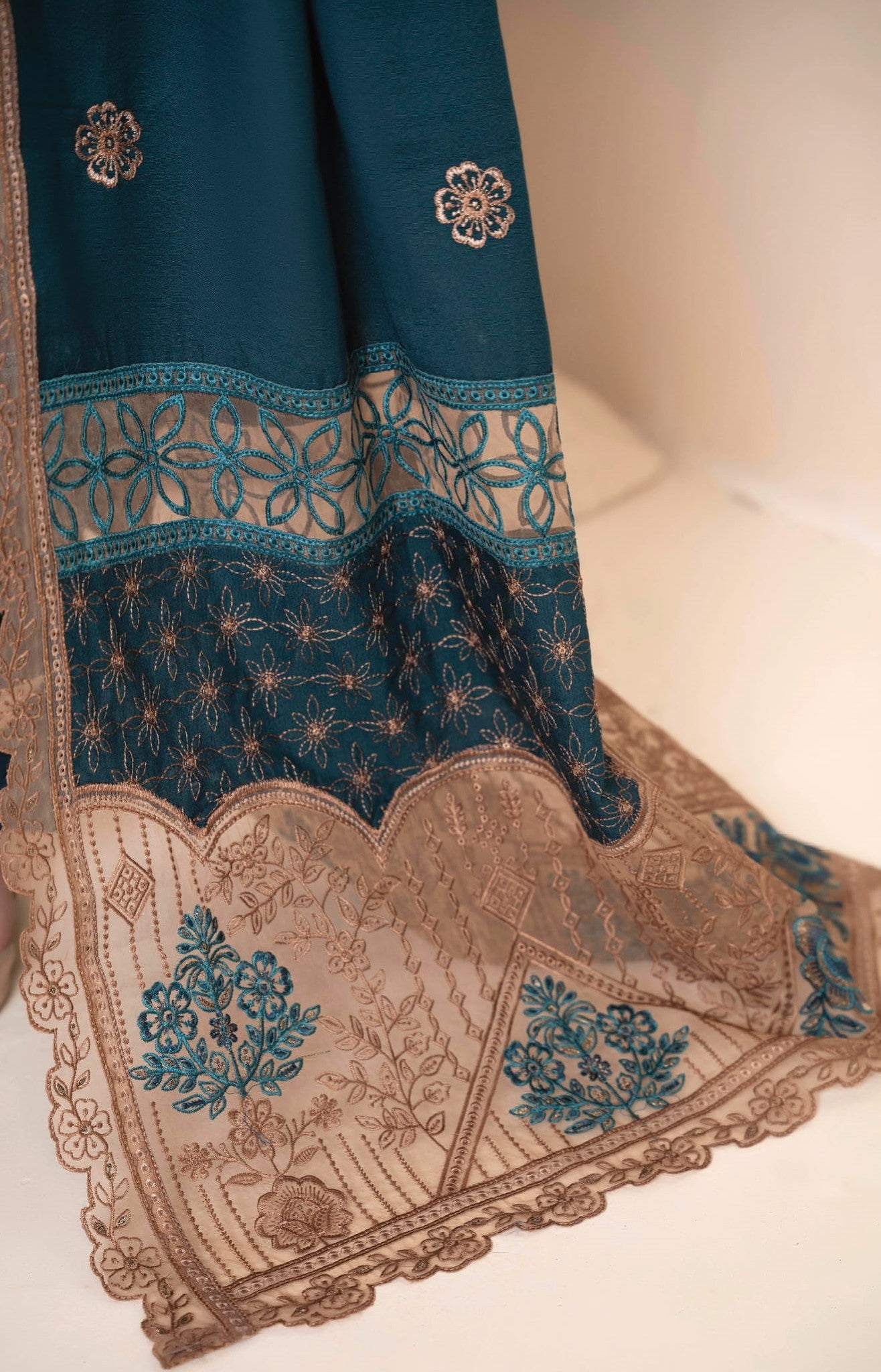 DUPATTA: Laser cutting embroidered Shawl with 4 site patti