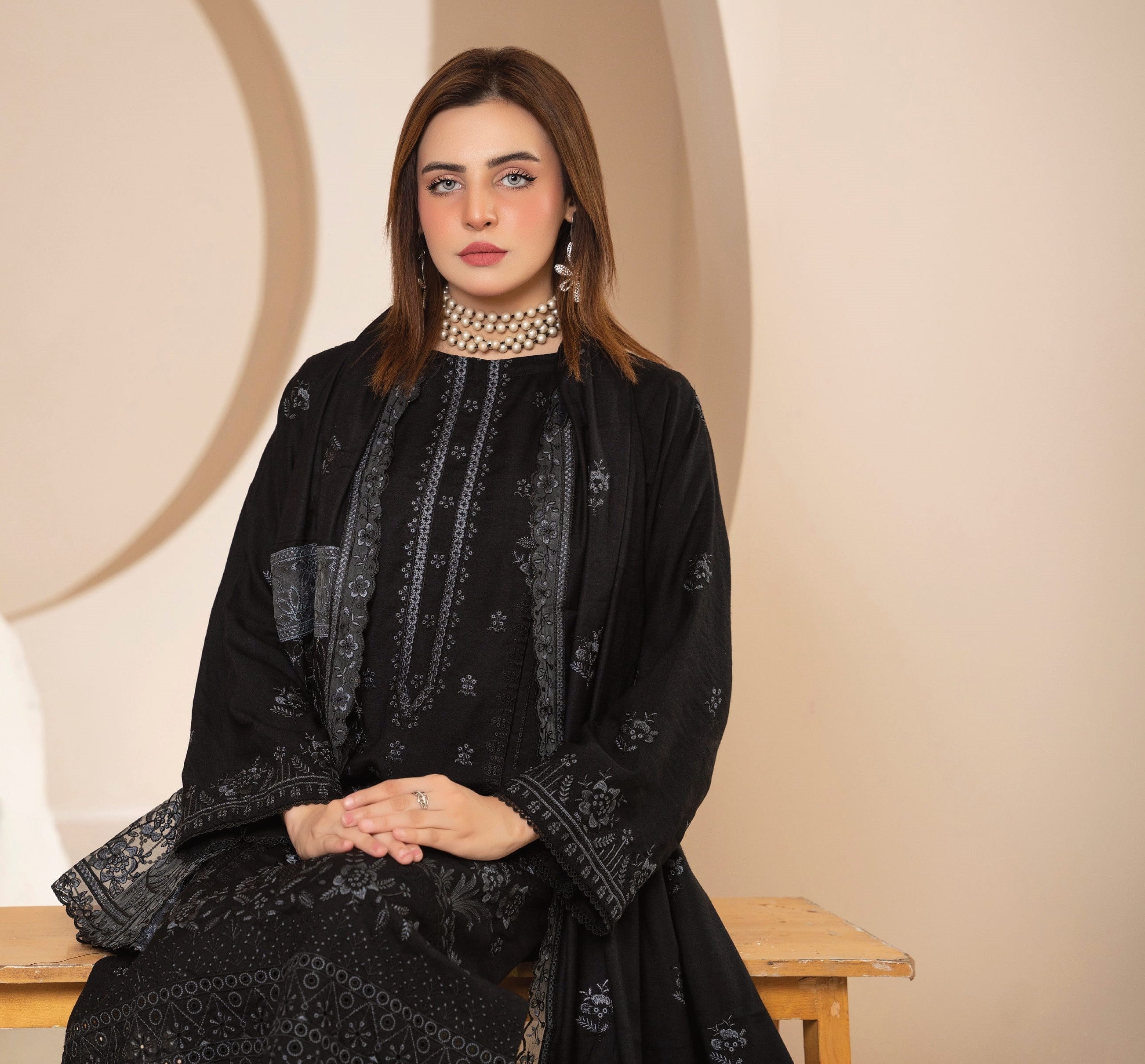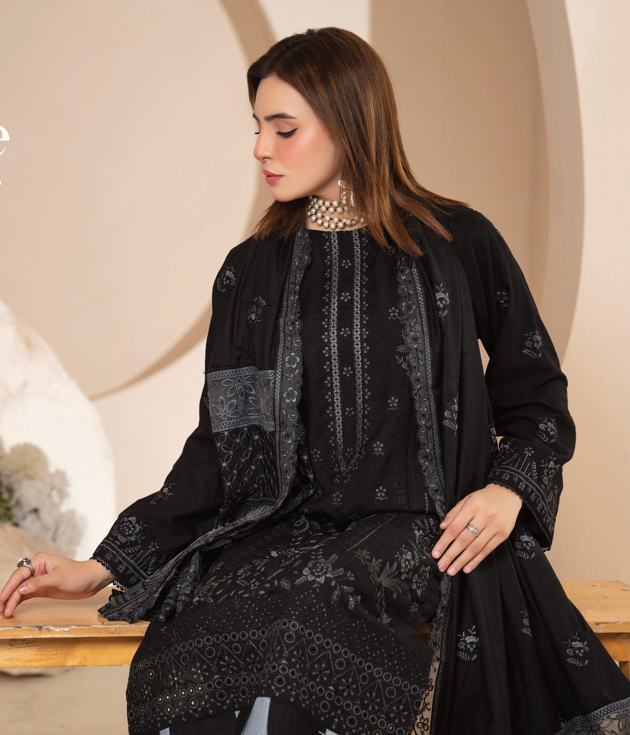 AANGAN-3 Piece Embroidered Self Slub Peach (Unstitched)