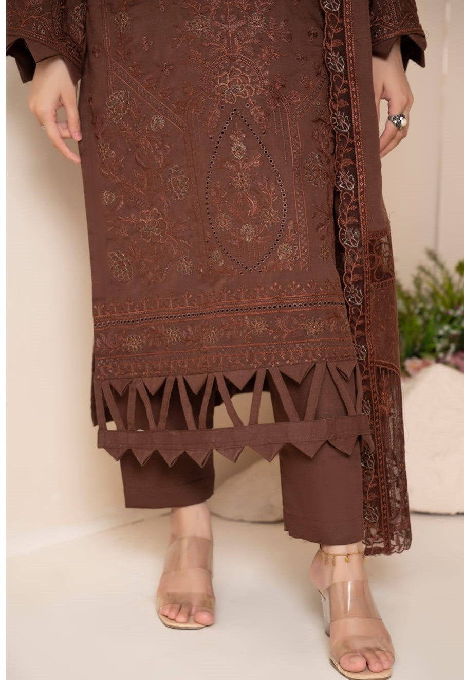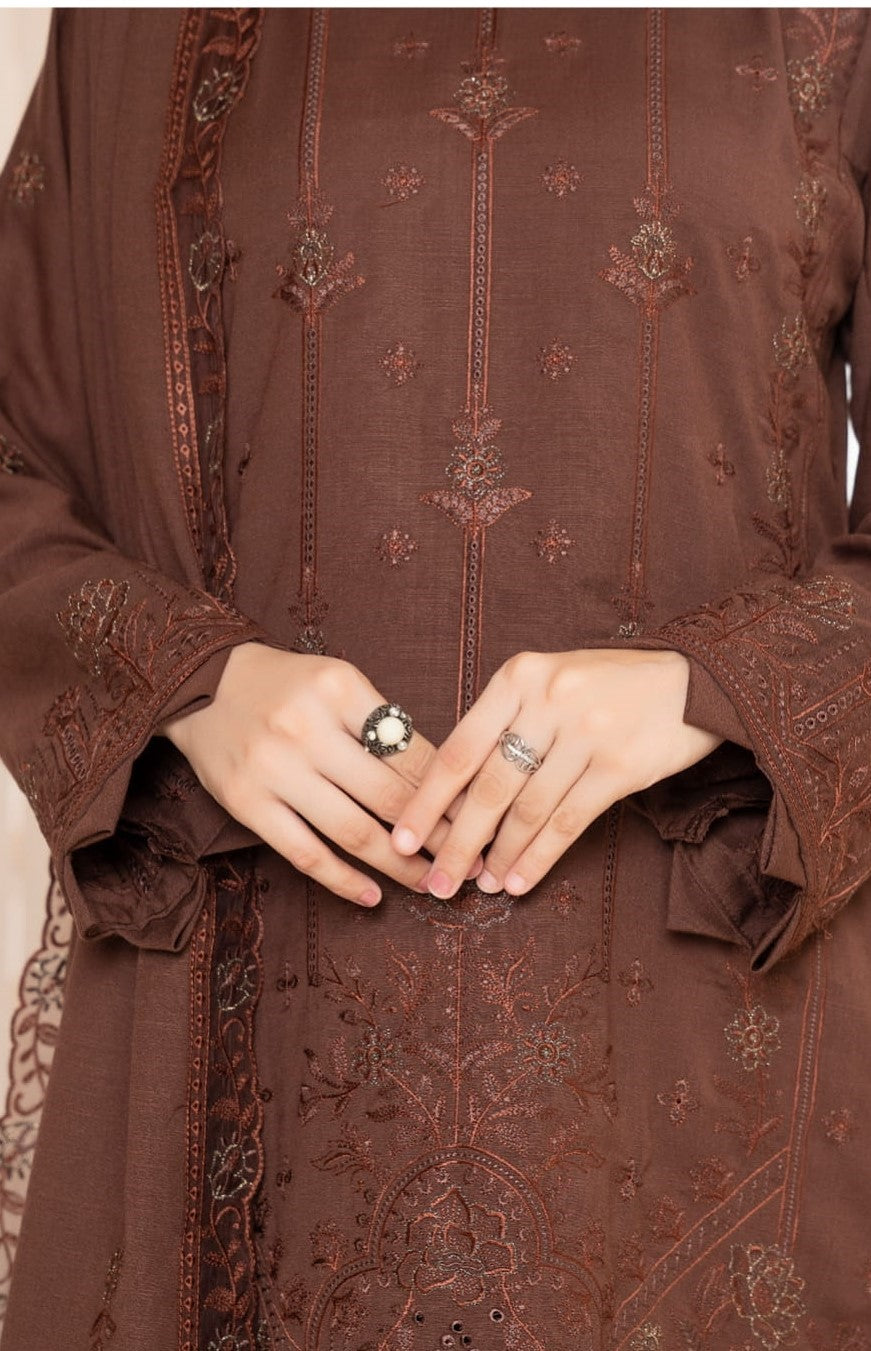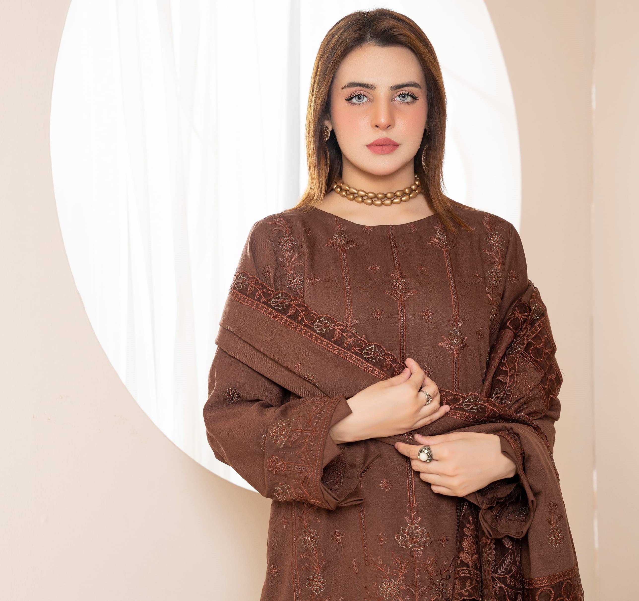 AANGAN-3 Piece Embroidered Self Slub Peach (Unstitched)