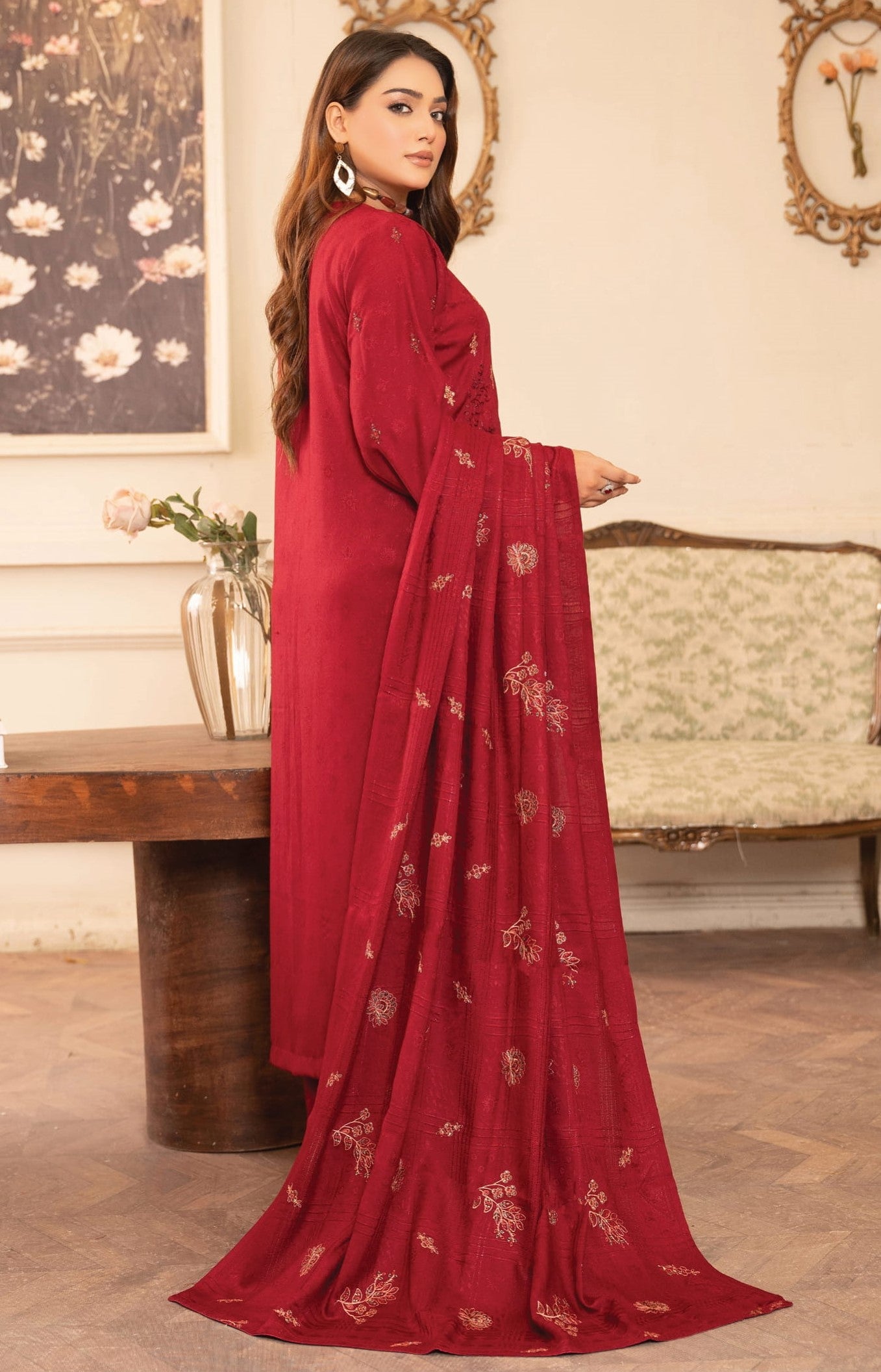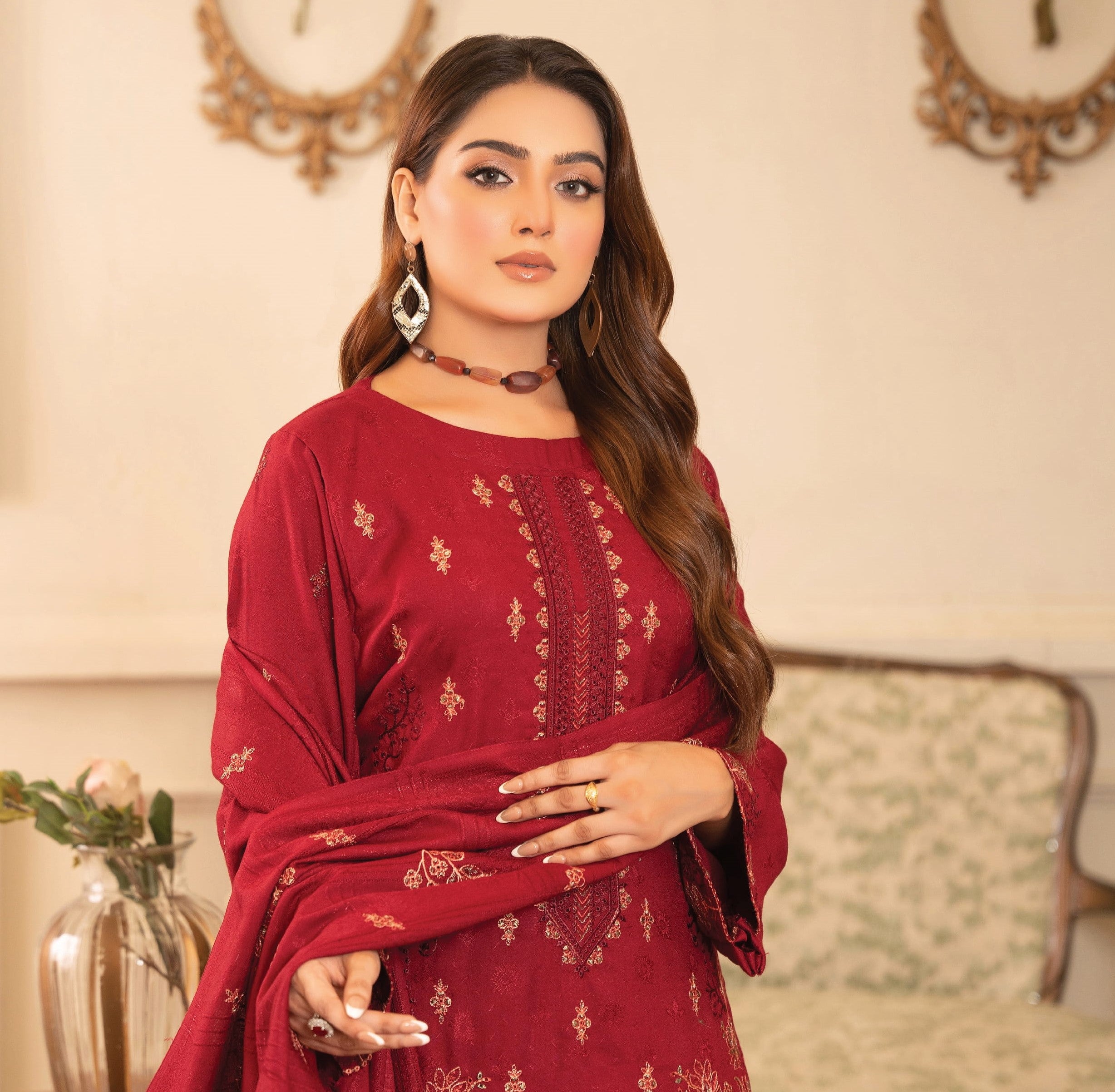 NOORAIN-3 Piece Embroidered Slub Sweet Peach (Unstitched)