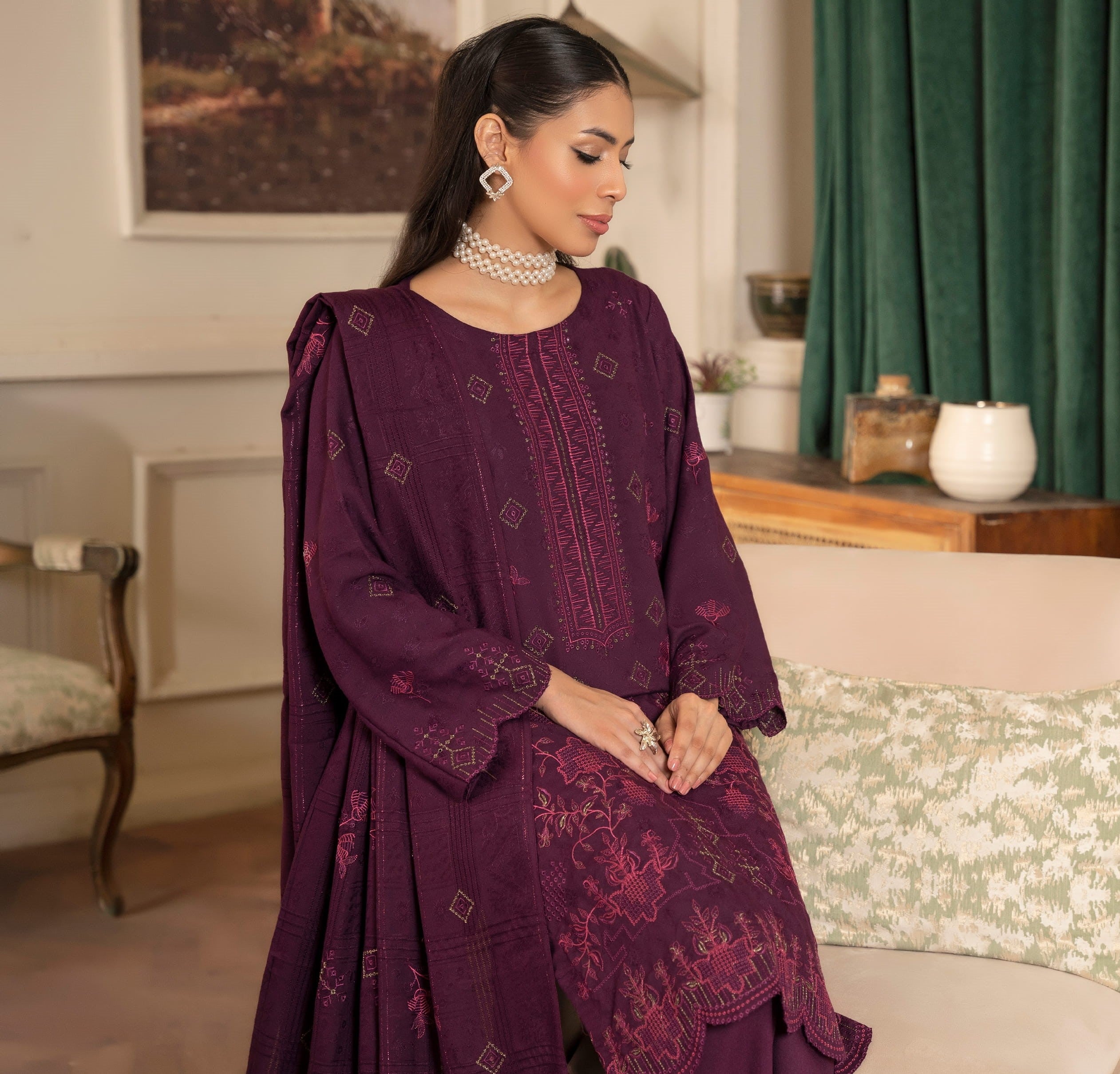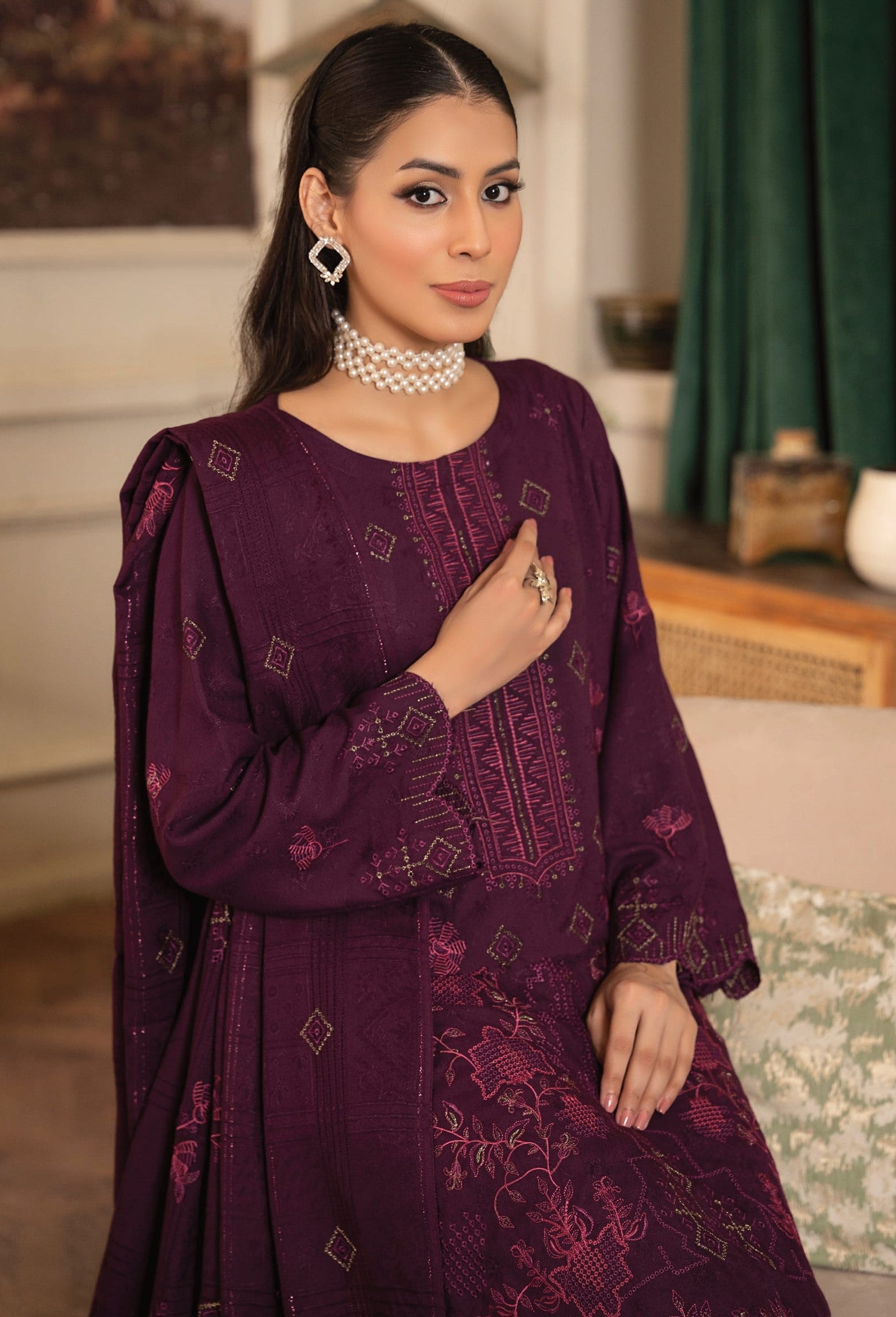 DUPATTA: Winter Fancy net embroidered Shawal