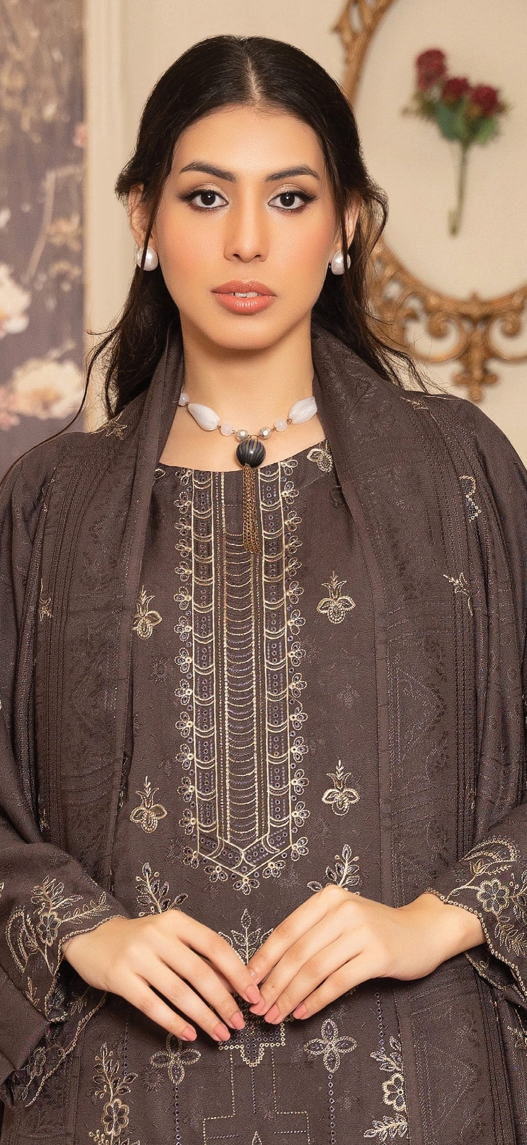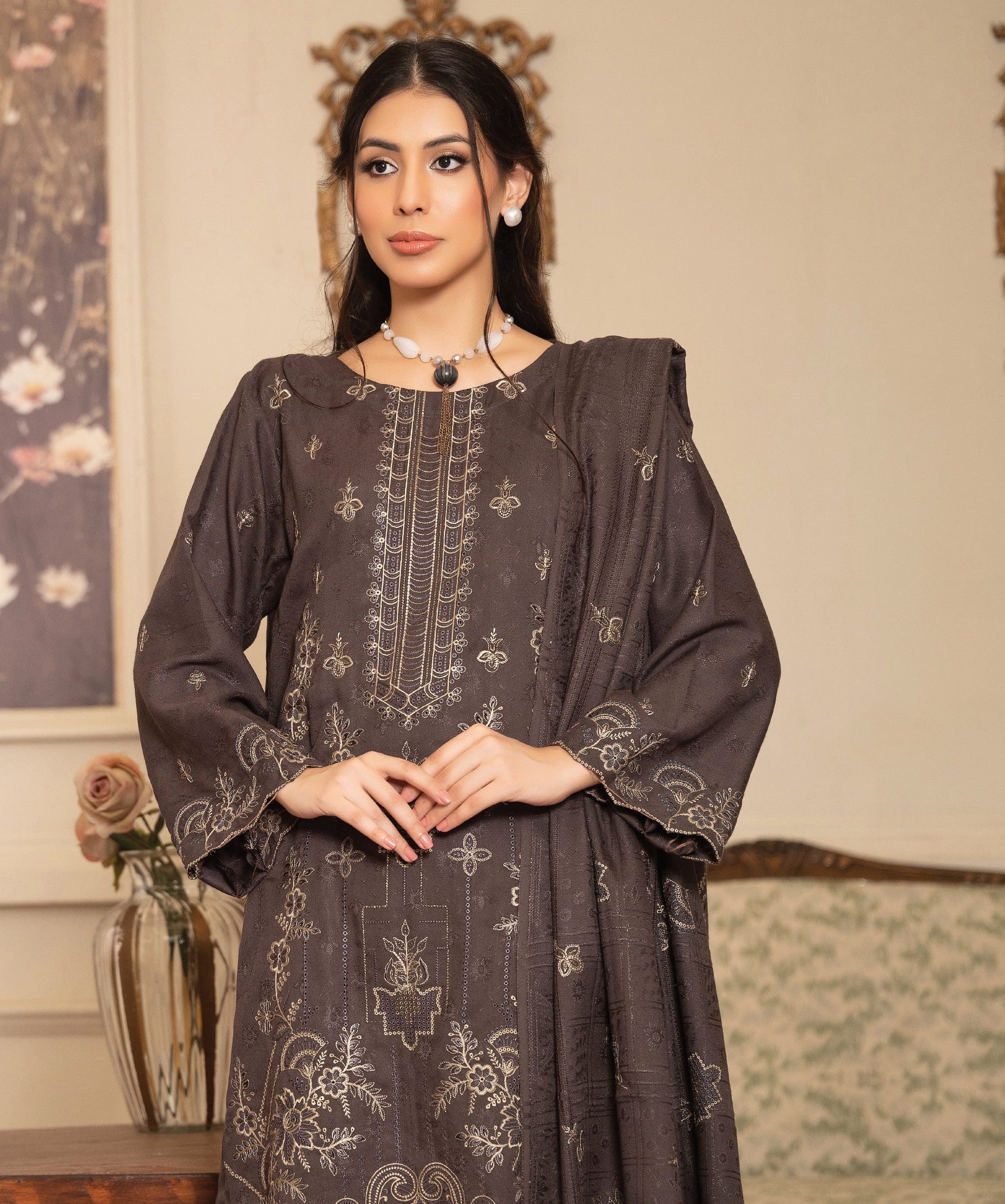 NOORAIN-3 Piece Embroidered Slub Sweet Peach (Unstitched)