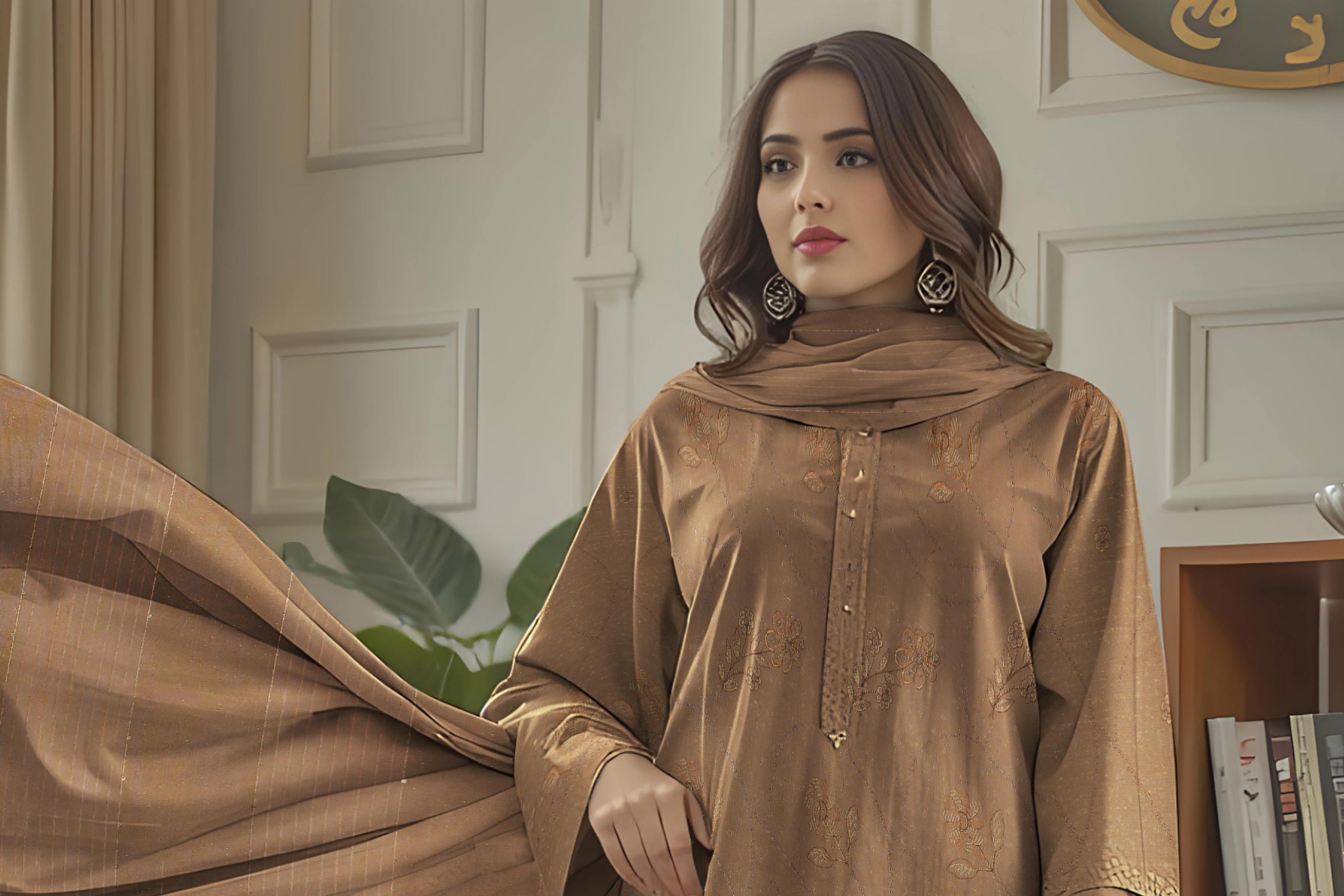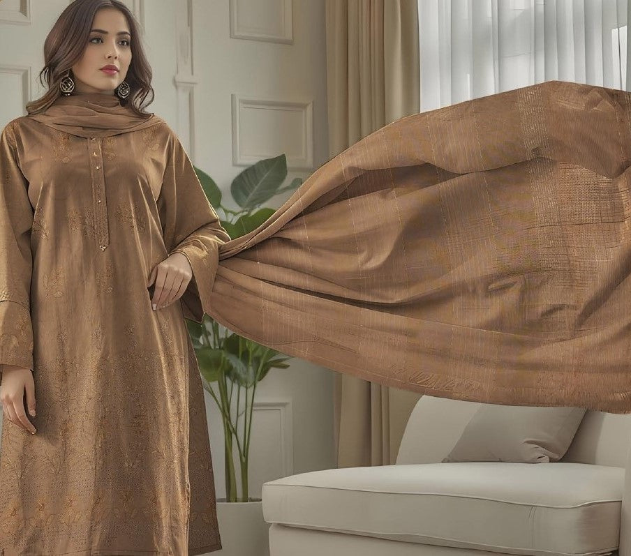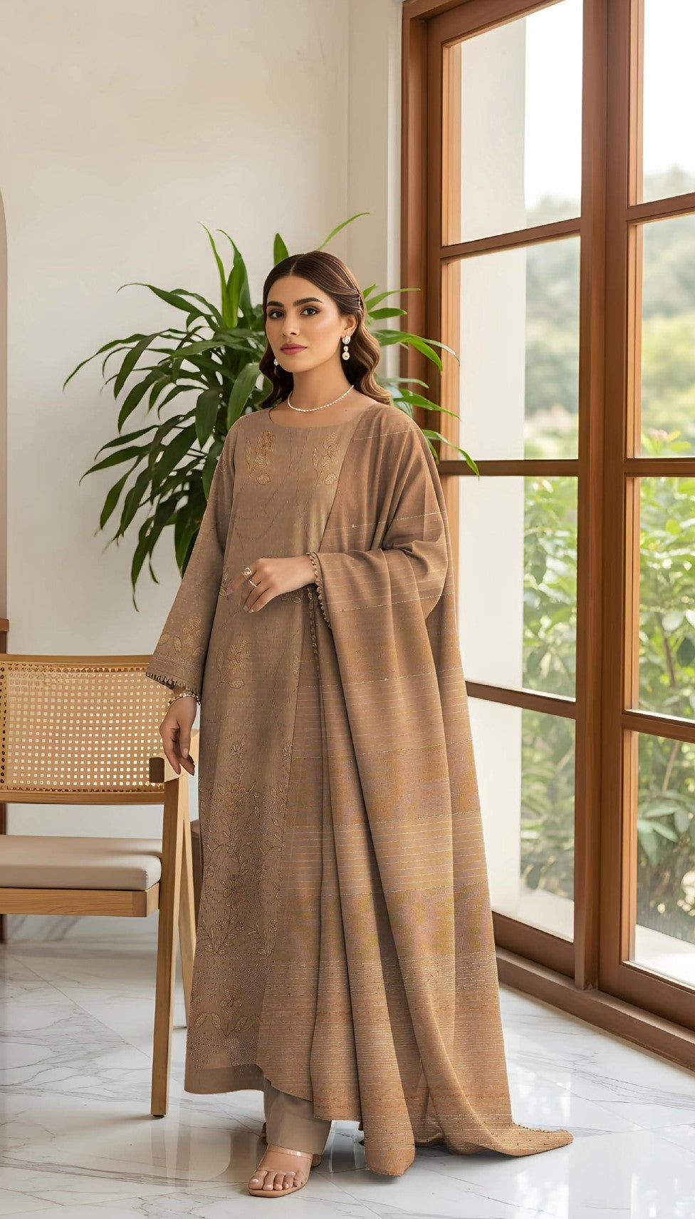 RESHAM-3 Piece Embroidered Sweet Masoori Peach (Unstitched)