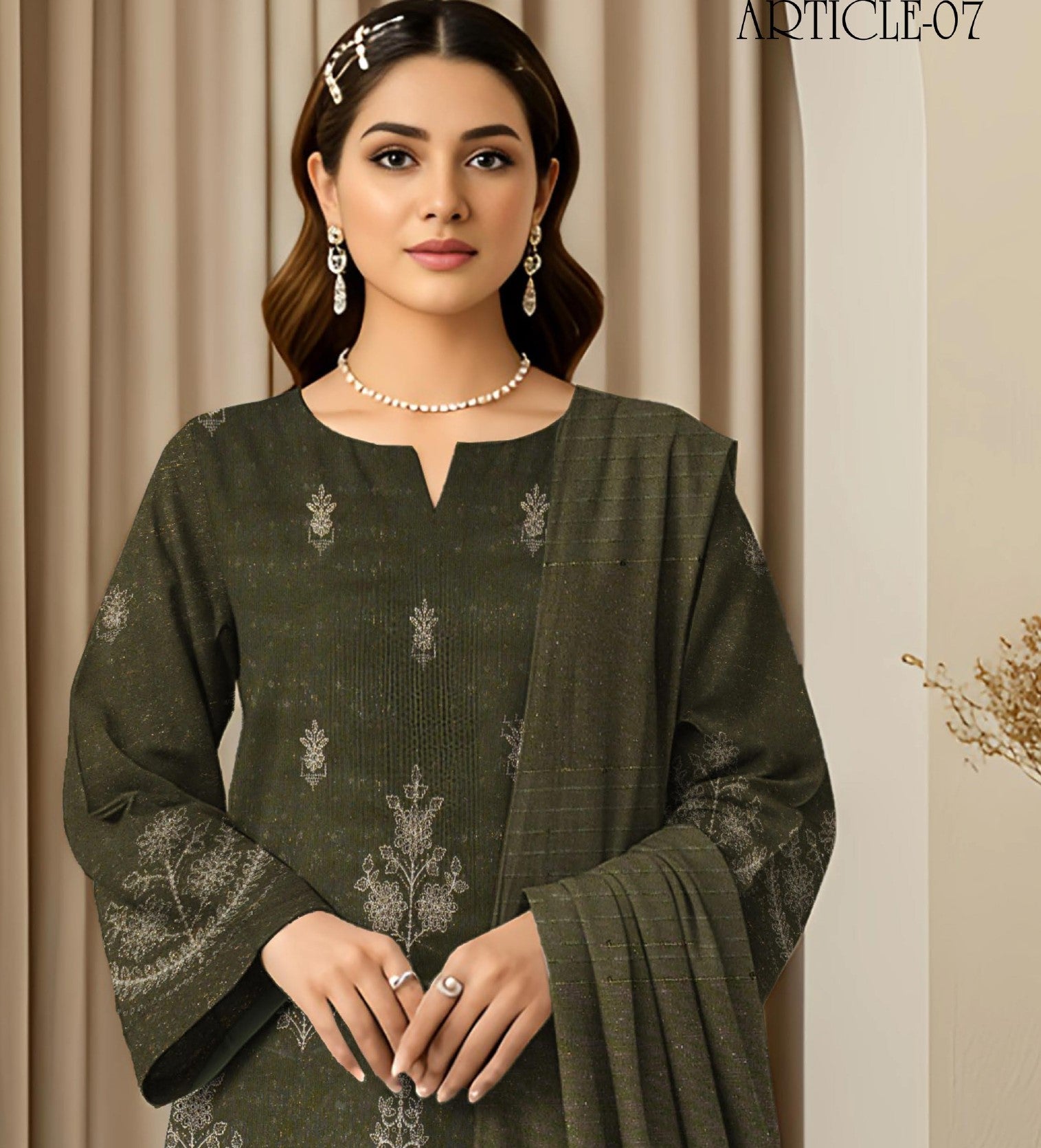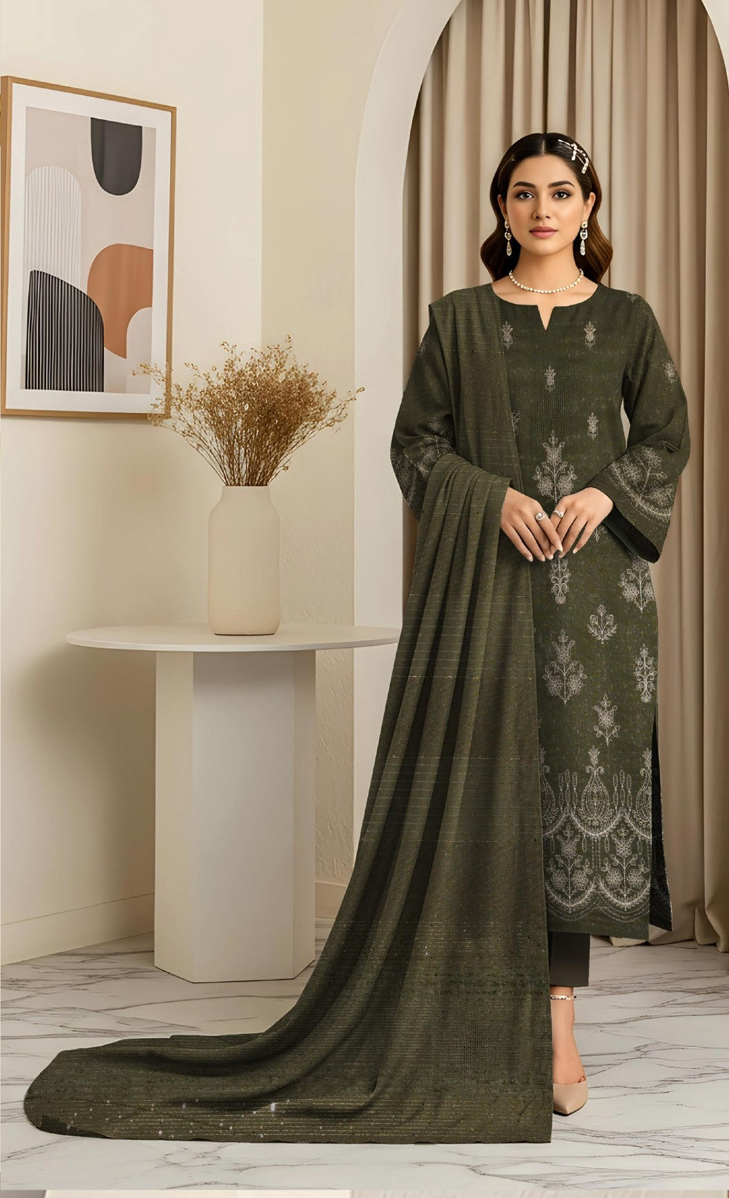 RESHAM-3 Piece Embroidered Sweet Masoori Peach (Unstitched)